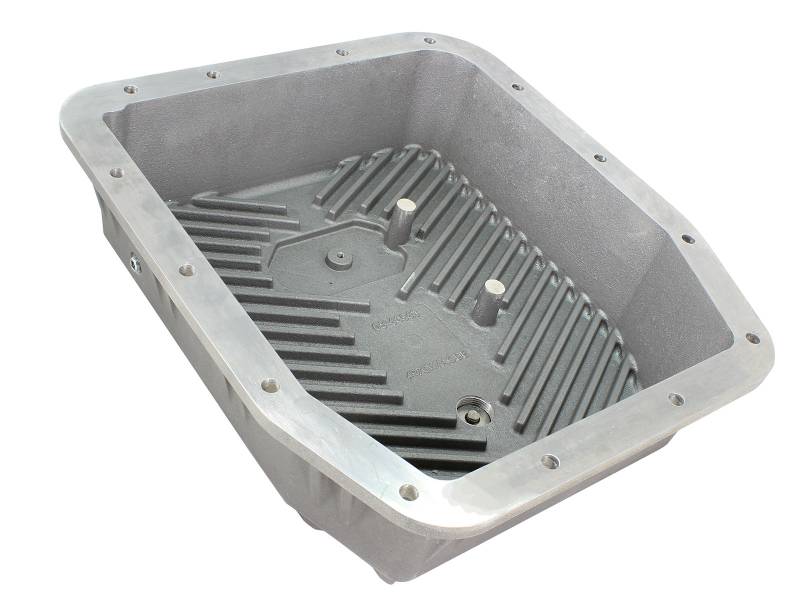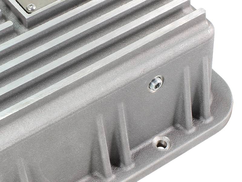 aFe POWER Street Series deep transmission pan brings performance engineering to the protection of your trucks transmission. This transmission pan has additional capacity for 2 more quarts over stock at the factory line, a magnetic drain plug and a 1/8" NPT port for your temperature sensor. Built-in internal and external fins transfer heat from the fluid to the outside air for maximum cooling. This transmission pan is constructed out of durable die-cast A356 aluminum with reinforced ribs and a raw finish with machined accents for maximum strength and styling.