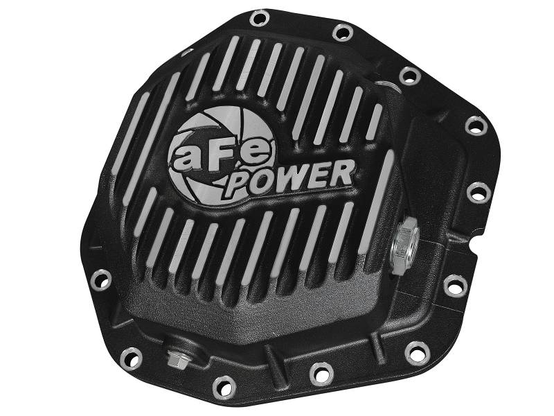 aFe Power's new rear differential cover brings performance engineering to the protection of your axle's differential. This differential cover is constructed out of durable A356-T6 cast aluminum with reinforcing ribs for maximum strength. Mounting hardware is included for a hassle-free installation. An oil level sight glass and calibration plug set to the factory level prevents overfilling of the differential. A magnetic drain plug and a deep reach magnetic fill plug are provided for maximum protection. This cover is finished with black powder-coating and machined fins for a distinctive look. 5 Quart Gear Oil Capacity: This cover has about a 5 quart gear oil capacity at the factory fill level, factory cover holds about 4 quarts. Built-in Cooling Fins: Built-in internal and external cooling fins increase surface area to maximize cooling of the differential oil. Magnetic Drain/Fill Plug: Oil Level Sight Glass: Large oil level sight glass with 1/8'' NPT calibration plug set to the factory fluid level to eliminate overfilling.