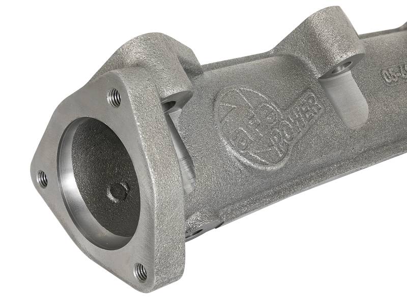 Bolt on diesel power with aFe's BladeRunner exhaust manifolds for your 08-10 6.4L Powerstroke. These ported ductile iron manifolds will reduce pressure loss to your turbocharger for increased performance and improve throttle response. The manifolds are compatible with all factory equipment including AC lines, heat shields, and EGR cooler for a true bolt- on upgrade. These manifolds have both the inlet and the outlet ports CNC machined to match the factory ports. This allows for maximum flow, without compromising the integrity of gasket sealing for a leak-free seal. An Exhaust Gas Temperature (EGT) port is incorporated into each manifold for easy installation of gauges or testing equipment. These manifolds are compatible with the stock up-pipes, which allows the manifolds to be installed without having to remove the turbocharger down-pipe or the up-pipes.