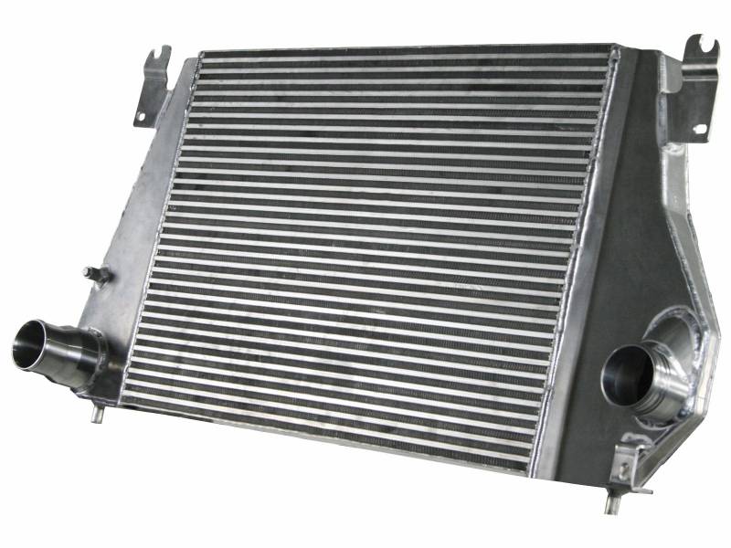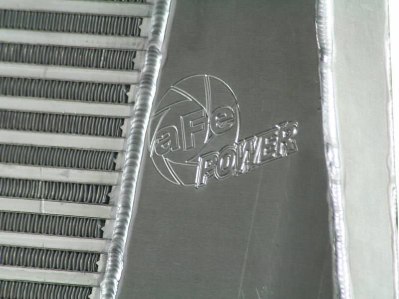 Bladerunner Intercoolers represent the next generation of intercoolers. The Bladerunner intercoolers utilize a 3 in. bar and plate design that out performs OE style tube and fin core designs. The end tanks are constructed out of 3/16 in. TIG welded aluminum plate tanks that incorporate three multi-directional vanes that efficiently direct air flow through the entire core for maximum cooling. The Bladerunner intercooler also comes with 4 1/8 in. pre-tapped ports for easy gauge installation as well as other auxiliary input options. Tested at 200psi which is perfect for the high boost applications. In recent testing the Bladerunner intercooler produced a 200 deg. temperature drop and a 100 deg. EGT drop as well as increasing air flow by 30 percent. Dont waste your time and money on modified factory intercooler. Invest in the aFe Bladerunner intercooler. the most sophisticated intercooler design on the planet.