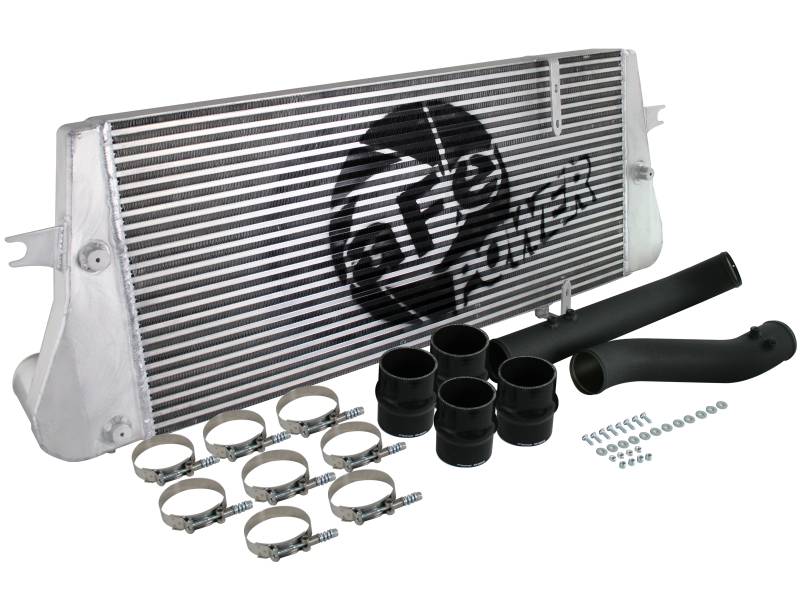 Bladerunner Intercoolers represent the next generation of intercoolers. The Bladerunner intercoolers utilize a 3 in. bar and plate design that out performs OE style tube and fin core designs. The end tanks are constructed out of 3/16 in. TIG welded aluminum plate tanks that incorporate three multi-directional vanes that efficiently direct air flow through the entire core for maximum cooling. The Bladerunner intercooler also comes with 4 1/8 in. pre-tapped ports for easy gauge installation as well as other auxiliary input options. Tested at 200psi which is perfect for the high boost applications. In recent testing the Bladerunner intercooler produced a 200 deg. temperature drop and a 100 deg. EGT drop as well as increasing air flow by 30 percent. Dont waste your time and money on modified factory intercooler. Invest in the aFe Bladerunner intercooler. the most sophisticated intercooler design on the planet.