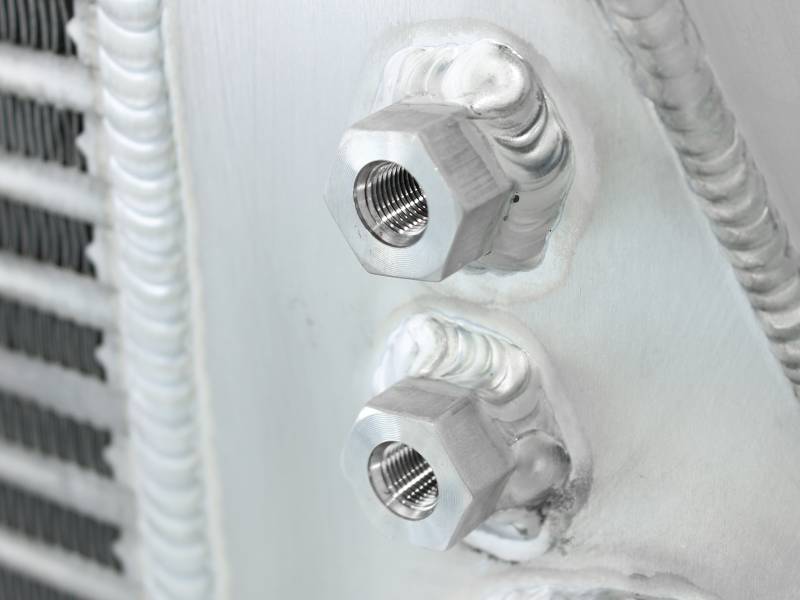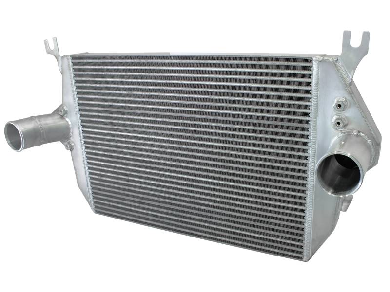 Bladerunner Intercoolers represent the next generation of intercoolers. The Bladerunner intercoolers utilize a 3 in. bar and plate design that out performs OE style tube and fin core designs. The end tanks are constructed out of 3/16 in. TIG welded aluminum plate tanks that incorporate three multi-directional vanes that efficiently di rect air flow through the entire core for maximum cooling. The Bladerunner intercooler also comes with 4 1/8 in. pre-tapped ports for easy gauge installation as well as other auxiliary input options. Tested at 200psi which is perfect for the high boost applications. In recent testing the Bladerunner intercooler produced a 200 deg. temperature drop and a 100 deg. EGT drop as well as increasing air flow by 30 percent. Dont waste your time and money on modified factory intercooler. Invest in the aFe Bladerunner intercooler. the most sophisticated intercooler design on the planet.