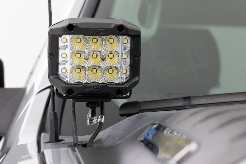 Light the Way! »Get the ultimate in truck lighting and safety with Rough Country's Ditch Mount LED Lights. These high-performance Ditch Mounts LED lights are specifically designed for your Chevy Truck to add extra side lighting for increased visibility in the dark. With multi-angle capability, you can move them in the direction you want. Our low-profile design means they will not affect the opening or closing of the hood or block your windshield wipers. So, you can hit the trails in style with superior nighttime illumination.\ Durable Protection. These Chevy Ditch Mount LED lights were designed to withstand the harsh outdoor elements while providing you with clear visibility. Constructed with a 7-gauge material for improved strength and reduced vibration that can occur on bumpy roads, this light boasts a durable black finish powder coating against corrosion. With an IP67 waterproof rating, they are great for any vehicle, whether on or off-road!\ Installation and Warranty. The Rough Country Chevy Ditch Mount LED Light Bars are the perfect combination of performance and style, offering a high-quality lighting solution without taking up valuable space on the front of your vehicle. This kit includes a complete set of mounting brackets and hardware, with vehicle-specific hood hinge brackets to ensure an easy and perfect fit on your Chevy. This product features our Limited Lifetime Warranty, so you can rest assured knowing you're covered.