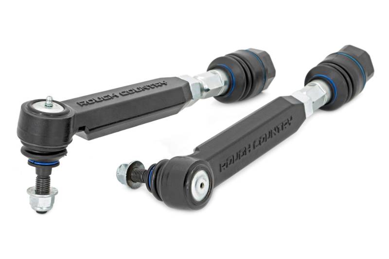 Don't settle for weak tie rods! You want your steering and suspension to be as strong as the truck you love. That's why you need Rough Country's HD Forged Tie Rod Kit. This upgrade is a great replacement for stock parts, especially if you're going off-road or towing a heavy load. Our tie rod ends give you a smoother ride, better turn-in response, and increased safety. Because sometimes stock just isn't strong enough.\ Strong and Reliable. You never know what kind of terrain you'll encounter or what obstacles may get in your way. That's why you can rely on the rugged durability of our HD Tie Rod Kit to keep you going where you need to go. They are bend-resistant, have 22mm adjustment threads, and replace the inner, and outer tie rod ends. These heavy-duty tie rod end assemblies are made with forged steel and include an adjustable shaft and steel ball-joint housing. With these heavy-duty replacements, you can keep your vehicle on the road and out of the shop.\ Installation. Rough Country's Tie Rod Kit is a no-cutting, bolt-on installation.\ Warranty. Rough Country's HD Forged Tie Rod Kit comes with our industry-leading warranty.