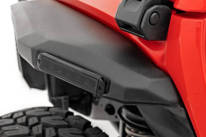 Innovative Design with Maximum Protection: Upgrade your Jeep Wrangler JL with Rough Country's High Clearance Flat Fender Flares. These bold, aggressive flares provide 9 inches of front and 4.5 inches of rear tire coverage, improving tire clearance and shielding your Wrangler from mud, rocks, and road debris. Turn heads on and off the trail with a rugged, finished look that enhances both style and functionality.Lightweight, Durable Construction: Built from flexible, UV-treated black TPO plastic, these fender flares resist fading, cracking, and warping under sun and trail exposure. Lightweight yet tough, they handle off-road terrain with ease. Integrated LED front marker lights feature six bright LEDs each, increasing visibility and safety while adding a modern, aggressive accent to your Wrangler.Easy Installation with Full Kit: This full set of front and rear flares requires only minor drilling and wiring for installation. All necessary hardware is included for a secure, hassle-free fit. Designed for home installation using standard tools, the kit can be installed efficiently in 2-3 hours.Three-Year Limited Replacement Warranty: Rough Country backs these High Clearance Flat Fender Flares with a three-year limited replacement warranty against manufacturer defects. Enjoy confidence and reliability knowing your investment is protected from structural and workmanship issues, giving you worry-free performance on and off the road.