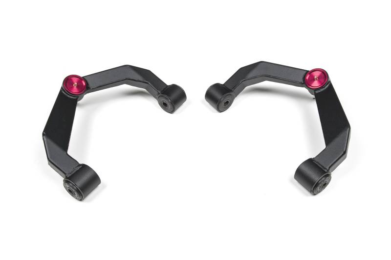 Zone Adventure Series Upper Control Arm Kit These arms are built from high strength steel, boxed, gusseted and fully welded for strength and rigidity. At the frame mount they use OE style rubber bushings for a long service free life and quiet operation. At the other end these arms feature an indexed ball joint cup designed for use with leveling and lifted applications. High strength ball joints are used with a protective ball joint cap to keep debris out. These upper control arms come fully assembled and ready to bolt in right out of the box. Improved strength with fully welded plate steel construction CNC machined ball joint cup with improved positioning ideal for use with leveling/lift kits High quality greaseable ball joints with a protective cap to keep out dirt/debris OE style rubber bushings for durability and maintenance-free operation Fully assembled and ready to install