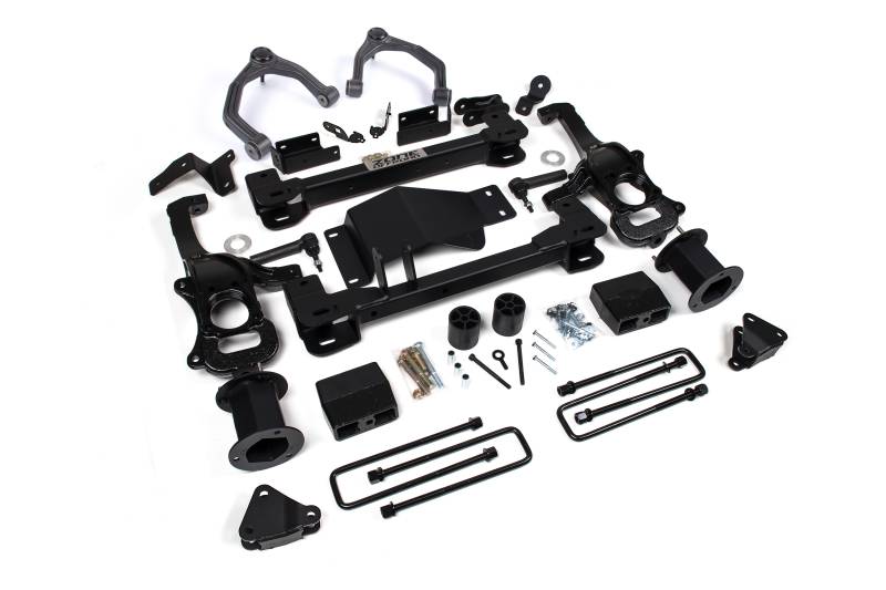 Zone 6" Suspension Lift Kit Take your GMC Denali 1500 to new heights with this 6" lift kit from Zone Offroad. These kits are designed to allow full functionality oft he ARC (adaptive ride control) system factory installed on the Denali to retain all the features of your truck at the new lift height. Kits include everything needed from high strength crossmembers and steering knuckles to strut spacers and ARC sensors, adventure series upper control arms, differential relocation brackets and more. Get the look, performance, and capability your truck deserves with clearance for up to 35" tires. High strength crossmembers to correct lower control arm positioning Ductile iron steering knuckles and new tie rod ends to correct steering geometry and maintain ESC system compatibility Strut spacers and shock relocation brackets to maintain ARC functionality Kits include adventure series upper control arms and differential skid plate for additional offroad protection Adventure Series upper control arms included for additional strength and durability