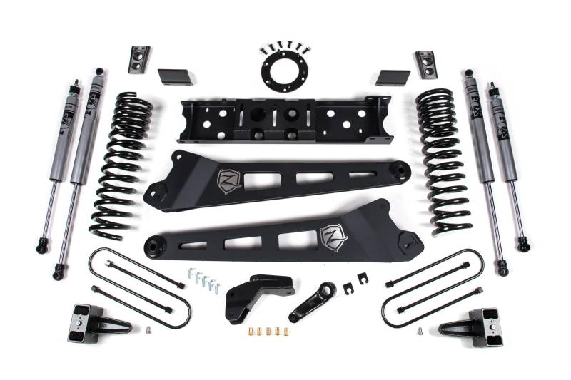 Take your RAM 3500 to new heights with this 6.5 Inch radius arm lift kit from Zone Offroad. Kits include everything needed from full length coil springs and heavy duty radius arms to steering correction and rear lift to level the stance.