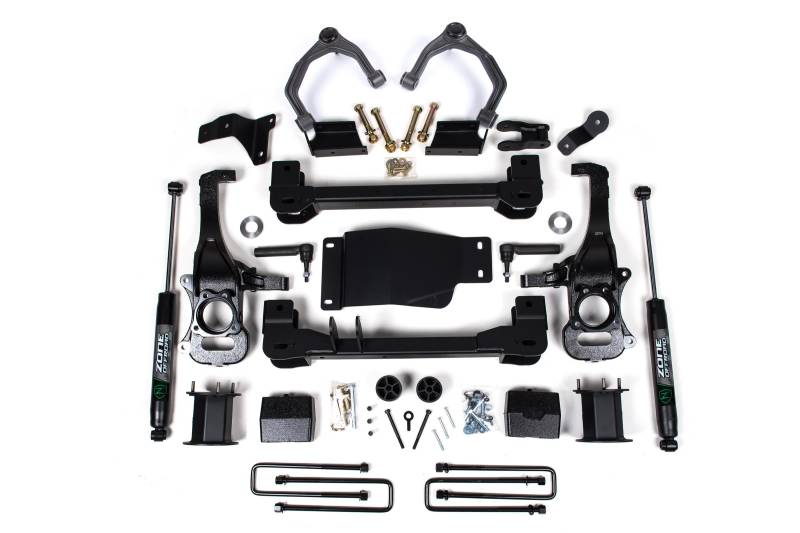 Take your Silverado/Sierra 1500 to new heights with this 6 Inch lift kit from Zone Offroad. Kits include everything needed from high strength crossmembers and steering knuckles to strut spacers, Adventure Series upper control arms and differential relocation brackets to maintain driveline angles.