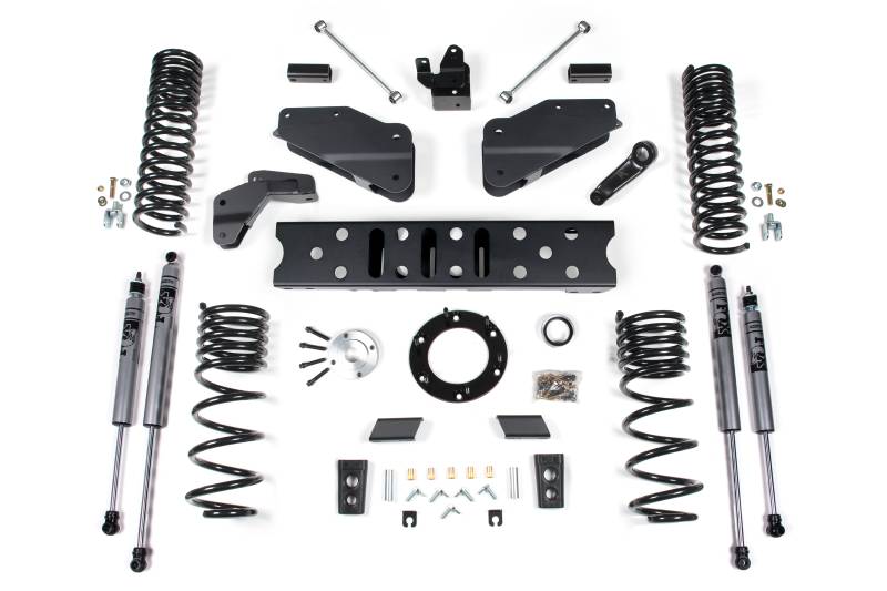 Zone 6.5" Standard Lift Kit Take your RAM 2500 to new heights with this 6.5" standard lift kit from Zone Offroad. Kits include everything needed from full length coil springs and radius arm drop brackets to steering correction and rear lift to level the stance. Get the look, performance, and capability your truck deserves with clearance for up to 37" tires. High strength progressive rate front coil springs for a great ride on any terrain Radius arm drop brackets to correct caster and maintain suspension geometry HD track bar relocation bracket to correctly position front axle under the truck Forged drop pitman arm to correct steering angles Front sway bar correction to maintain handling performance