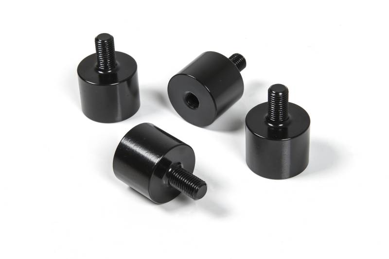Zone Bump Stop Extension Kit If you have installed large tires or a lift and are having tire rubbing problems or other issues related to uncontrolled compression travel, install these bump stops a simple and easy solution to avoid potential damage to the factory strut. Corrects bump stop engagement on 2.5-3.5" lifted applications 1-piece steel construction, finished in durable black e-coat plating Easy installation with simple thread on design