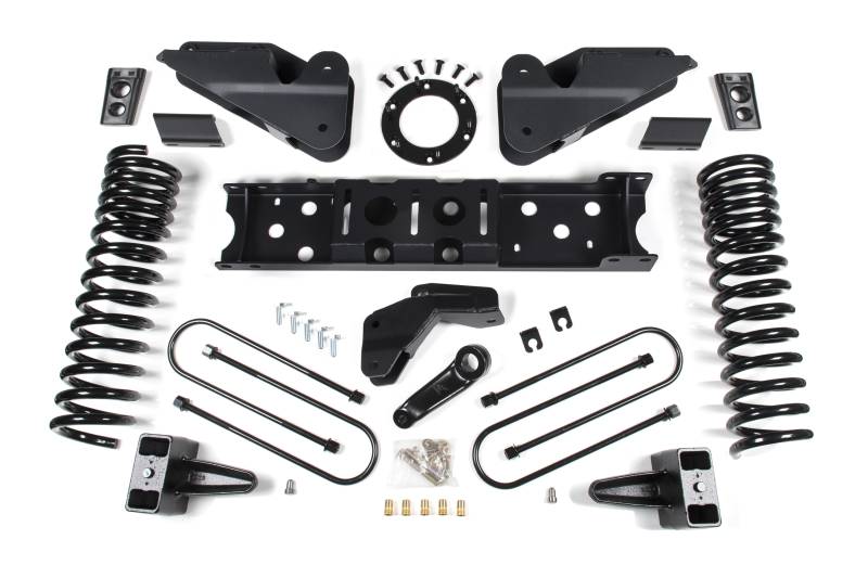 Take your RAM 3500 to new heights with this 4.5 Inch lift kit from Zone Offroad. Kits include everything needed from full length coil springs and stout radius arm relocation brackets to steering correction and rear lift to level the stance.