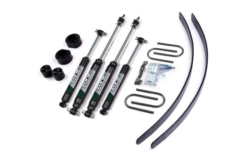 Take your Jeep XJ up a notch with this 2 Inch lift kit from Zone Offroad. This kit includes everything needed from polyurethane coil spacers and bolt-in bump stop extensions to a rear add-a-leaf kit and u-bolts to level the stance.