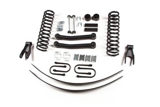- Rear long add-a-leafs and HD shackles are supplied to lift and level the rear stance