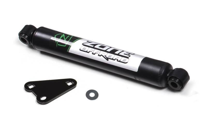 Zone Nitro Steering Stabilizer While many vehicles come equipped from the factory with a steering stabilizer, the small cylinder isn't up to the task of controlling oversized tires. Zone Offroad offers upgraded steering stabilizer options to enhance vehicle control by reducing steering shimmy and bump steer. These quality systems are designed to improve tire wear and front end component life as well as lessen side to side motion caused by wide tires and unpredictable road conditions. Helps control front end shimmy caused by oversized wheels/tires Extends life of front end steering components Heavy duty cylinder construction Mounting bracket included