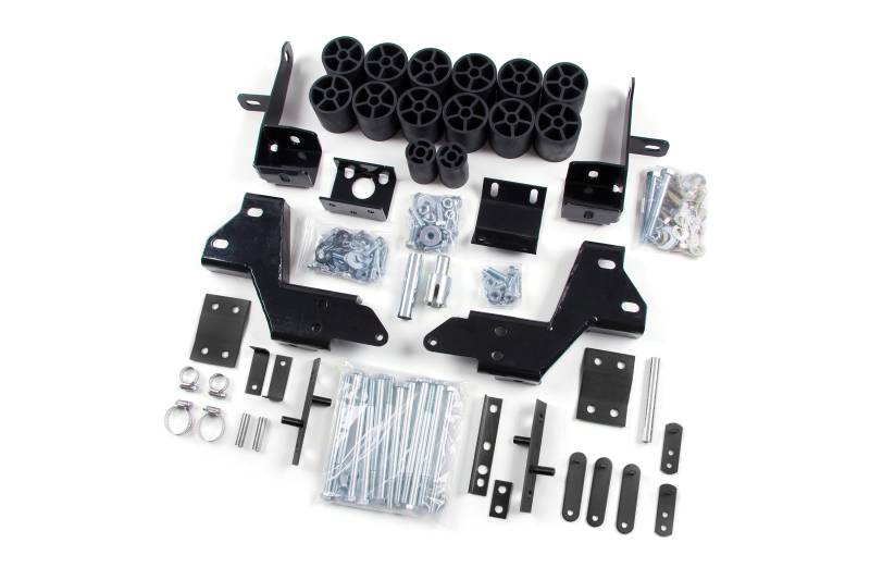 Zone 3" Body Lift Kit Improve the styling of your Chevrolet/GMC SUV while maintain the ride quality and handling characteristics with this 3" body lift from Zone Offroad. This kit raises the body and bumpers up off the frame to allow clearance for larger tires while maintaining factory body lines. It includes indestructible body mount blocks, high quality hardware, steering extension, bumper brackets, radiator brackets, spare tire relocation brackets, fuel filler extension and more. Front & Rear bumper relocation system included CNC Machined Steering Extension included Radiator Relocation Included Spare Tire Reloction Included Fuel Fill Extension Included