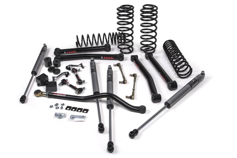 J-Konnect 3" Lift Kit Easy to install bolt on performance suspension to handle the toughest off road trails and drive you home after. These J-Konnect Systems build off the base J-Venture to add J-Link lower control arms for equal parts on-road handling and off-road capability and strength. These lower control arms not only add front caster and rear wheelbase, they are a serious upgrade to the strength over the factory control arms. Built 2” x .250-wall DOM tubing while offering better NVH isolation with large factory style rubber bushings at both ends. These combined with the dual rate coil springs, adjustable track bar, quicker disconnects and more offer improved trail performance and strength while catering to on-road handling needs. This particular kit features next level performance from the FOX 2.0 Adventure Series Shocks for improved performance across off terrains. Get connected with J-Konnect. Front/Rear Dual Rate Coil Springs designed for great ride quality across any terrain Front/Rear FOX 2.0 Adventure Series Shocks specifically valved for this suspension system for improved performance on and off-road Front Adjustable Track Bar and Rear Track Bar Bracket to correct axle positioning under vehicle Front Sway Bar Quicker Disconnects and Rear Sway Bar Links for increased offroad articulation Front/Rear Bump Stop Extensions to properly limit suspension up travel