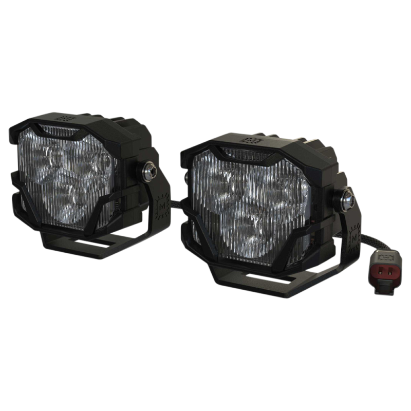 Off-Road Reinvented: Since 2008, Morimoto has been building the best lighting upgrades for the automotive aftermarket... consistently turning out products packed with more performance, reliability, and best in-class fitment & style. As a new player in the off-road game, we have embraced that philosophy big time, pumped up the Redbull intake, and now it's time for the old competition to rethink their strategy. The brand new, patented line of 4Banger Off-Road LED lights were completely designed, engineered, and tested in the USA, and everything about them is truly next level. NCS Wide Beam: Illuminates the ground directly in front of the vehicle, making them a perfect complement to a set of high-performance Morimoto headlights. They produce a very wide beam to drastically improve visibility off to the sides of the road. Superior vertical gradient control eliminates glare to oncoming traffic, and when mounted in the fog light position and aimed appropriately, the beam pattern produced by both the NCS and HXB Wide Beam models has been verified compliant with the latest SAE F regulation for use as a street-legal fog light. You can view those test reports in the compatibility section. Form Meets Function: The overall footprint of the 4Banger is approximately 30% smaller than alternatives that offer comparable performance. This allows for an unbeatable fitment when paired with Morimoto's flush mount or ditch light mounting kits, which are available for today's most popular trucks and SUVs. Performance: There are no "off the shelf" guts inside of a fancy housing here. Every element of the 4Banger is proprietary. LucidShape was used to optimize performance around the most modern, lumen-dense LEDs from Osram.