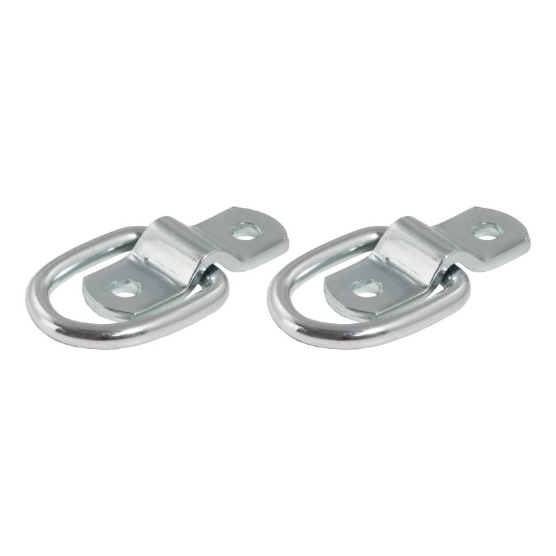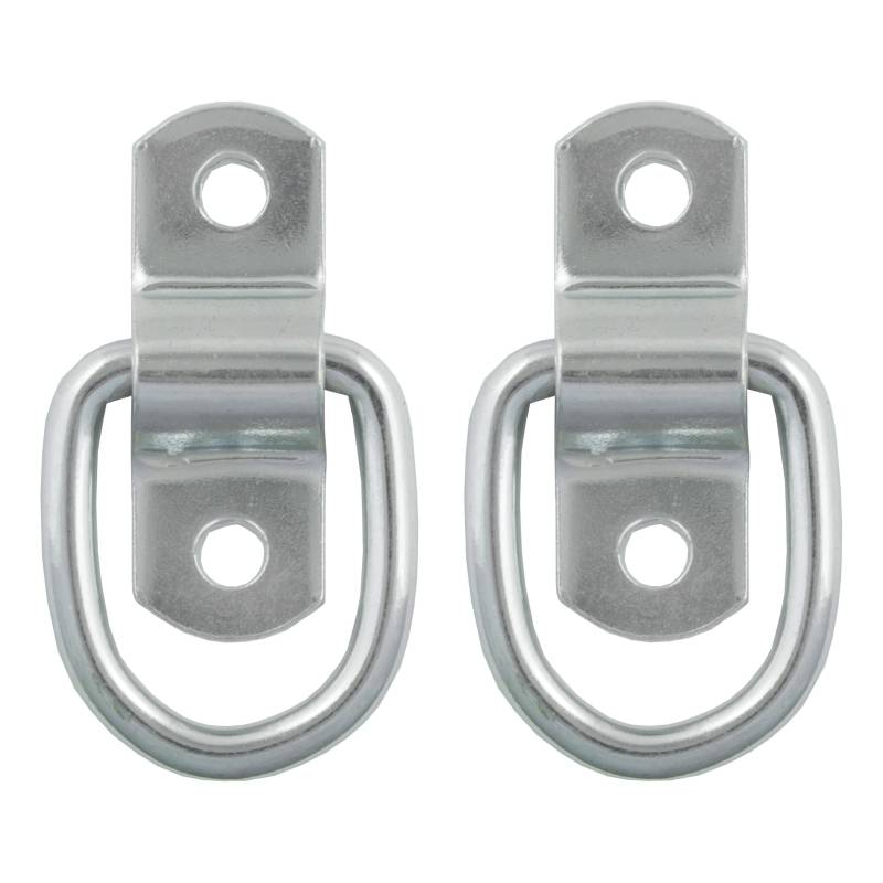 Making sure that your cargo is tied down and fully secure for the journey is important for any towing job. Not only is unsecured cargo a danger to you, your passengers and your fellow drivers, but it can also cause damage to your trailer, pickup truck bed or vehicle cargo area, as well as to the cargo itself. Together with our cargo straps and safety chains, CURT tiedown anchors are easy to mount in any trailer, truck or full-size van, and they help keep your items safe for the road ahead. These particular D-ring tiedown anchors are designed to be surface mounted and add convenient anchoring points for cargo straps, ropes or cables. They comes with a 2-1/4 in. x 13/16 in. mounting bracket with two 1/4 in. diameter mounting holes, spaced 1-1/2 in. apart, center to center. These rope rings feature zinc-plated steel construction and offer a capacity of 1,200 lbs. Mounting screws are not included in this package.
