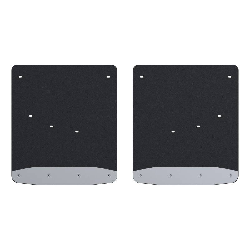 Whether you're on the job or off-roading through the wilderness, it doesn't take long for rocks and other debris to wreak havoc on the body of your truck. LUVERNE Textured Rubber Mud Guards are the perfect solution for maintaining that pristine, professional look. For the front or rear of the truck, these custom mud flaps add style and body protection. They are constructed from heavy-duty black rubber that stands up to road debris and sheds water with ease. They feature 18-gauge stainless steel plates to help protect the bottom edge and extend the life of the mud flaps. With their 3/8 in. thick, recycled rubber construction, Textured Rubber Mud Guards easily deflect everything from mud to gravel, protecting the body of your truck from scratches, chips and scuffs. They are also made to add a stylish accent to your truck, featuring stainless steel plates along the bottom edge of each flap. The plates are made from 18-gauge stainless steel to provide a heavy-duty, rust-resistant shield, and they feature a bright, high-polish finish for a long-lasting shine. The textured finish of the rubber mud flaps is also designed to easily hide minor scuffs and scratches and maintain a clean appearance. For an easy installation and a custom fit, these truck mud flaps are made vehicle-specific. This particular set fits specific years of the Chevy Silverado and GMC Sierra 2500 HD dually and 3500 HD dually (see application info to verify fitment). They install with corrosion-resistant fasteners and high-strength steel mounting brackets with a galvanized finish for long-lasting durability. Universal mud flaps are also available.