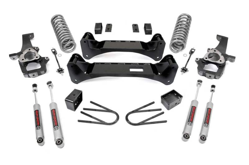 Level Your Ride & Boost Ground Clearance: Eliminate factory rake by lifting the front to match the rear, giving your RAM 1500 a bold, aggressive stance and improved off-road capability. This easy bolt-on kit increases ground clearance without compromising your smooth, factory-like ride.Built Tough for Off-Road Performance: Crafted from laser-cut, heavy-duty steel, the kit includes high-clearance front and rear cross-members and durable lifted cast knuckles engineered to maintain proper suspension geometry and superior handling on any terrain.Complete Protection & Durability: A rugged skid plate shields your differential from rocks and debris, so you can tackle harsh trails with confidence and peace of mind.Premium Ride Quality with N3 Nitrogen-Charged Shocks: Includes Rough Country's high-performance N3 shock absorbers, valved for a balanced mix of smooth on-road comfort and aggressive off-road control.Fast & Hassle-Free Installation: Everything you need is included for a straightforward bolt-on setup that gets you on the trail quicker, no complicated modifications required.Backed by Limited Lifetime Replacement Guarantee: Enjoy long-lasting reliability and confidence with Rough Country's industry-leading warranty.