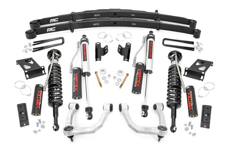 Upgrade with Easy Installation: Rough Country's 3.5-inch Bolt-On Kit offers easy installation and aggressive good looks at an incredible value. Take your truck to new heights with this excellent option for the second/thrid generation Toyota Tacoma. This kit features a set of high-quality, lightweight, forged aluminum Upper Control Arms designed to make alignment adjustments easier with durable rubber bushings. These arms promote a factory-like geometry by keeping the ball joint at optimum angles after lifting, allowing for an improved range of motion with less stress, wear, and tear.Boost Off-Road Performance and Customize Your Ride: This 3.5-inch lift kit raises your vehicle's clearance, giving you better off-road capability and smoother performance over obstacles. For a truly personalized experience, this all-inclusive kit is fully configurable with a variety of shock and strut options. Choose from Rough Country's nitrogen-charged N3's or the premium Vertex reservoir for the perfect ride quality tailored to your needs. Plus, Rough Country's rear springs minimize axle wrap, enhancing vehicle stability and durability while maintaining superior comfort and handling, preserving your vehicle's original ride feel.Customize Your Ride: This all-inclusive kit is fully configurable with all shock/strut options, allowing you to choose from Rough Country's nitrogen-charged N3's or the premium Vertex reservoir for the perfect ride quality tailored to your needs. Additionally, Rough Country's rear springs minimize axle wrap, enhancing overall vehicle stability and durability for a more controlled ride. it's the perfect replacement for worn-out factory springs while preserving superior comfort and handling, maintaining your vehicle's original ride feel.Achieve the Perfect Stance: Once installed, this kit gives your truck a balanced, aggressive stance, leveling the front with the rear for a more commanding look. Installation is quick and hassle-free with no cutting or welding required, allowing you to get back on the road faster. Compared to other kits on the market, installation is straightforward and can be completed with common tools in a home garage. Best of all, this kit features Rough Country's Limited Lifetime Replacement Warranty, providing long-lasting durability.