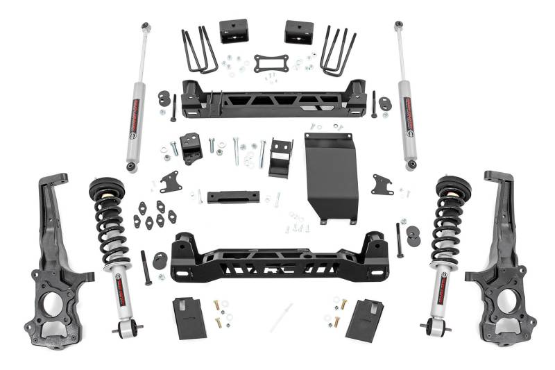 Transform your Ford Ranger from mid-size to masterpiece with Rough Country's 6-inch Lift Kit! This kit includes everything you need for a monster makeover of your rig. A set of beefy front and rear crossmembers keep everything in line, while a durable skid plate offers unbridled protection against off-road obstacles. A set of lifted, one-piece cast knuckles and rear, fabricated lift blocks offer plenty of ride height to run larger tires and wheels!This kit also features Rough Country's Nitrogen-charged N3 shocks. These 10-stage variable valving, high-pressure Nitrogen charged shocks offer a fantastic blend of off-road action and smooth highway ride quality.Rough Country's Ford Ranger kit is engineered to preserve the smooth, factory like ride while upgrading your vehicle's performance and off-road potential. Set your Ranger apart from the pack with this total transformation for your truck! Includes a Lifetime Replacement Guarantee.