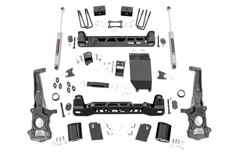 Transform your Ford Ranger from mid-size to masterpiece with Rough Country's 6-inch Lift Kit! This kit includes everything you need for a monster makeover of your rig. A set of beefy front and rear crossmembers keep everything in line, while a durable skid plate offers unbridled protection against off-road obstacles. A set of lifted, one-piece cast knuckles and rear, fabricated lift blocks offer plenty of ride height to run larger tires and wheels!This kit also features Rough Country's Nitrogen-charged N3 shocks. These 10-stage variable valving, high-pressure Nitrogen charged shocks offer a fantastic blend of off-road action and smooth highway ride quality.Rough Country's Ford Ranger kit is engineered to preserve the smooth, factory like ride while upgrading your vehicle's performance and off-road potential. Set your Ranger apart from the pack with this total transformation for your truck! Includes a Lifetime Replacement Guarantee.