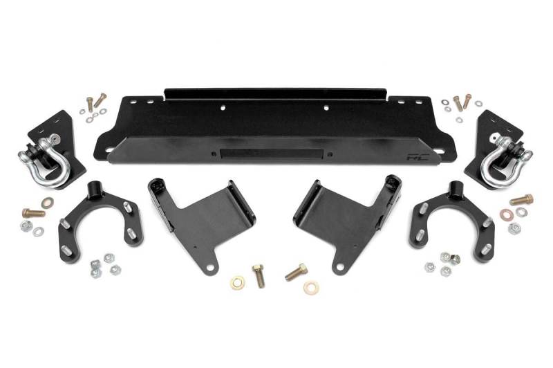 Rough Country's Winch Mounting Plate brings the power of recovery to your factory bumper! Take to the trails with peace of mind knowing you can easily recover your vehicle or help others when the time arrives. This innovative mounting system is designed to work with your factory JK bumper and can accommodate all standard-sized winches! The durable 1/4in steel plate mounts directly to the frame and is poweder coated black for a long life of good looks. The easy bolt-on installation procedure allows you to add this upgrade in a flash.