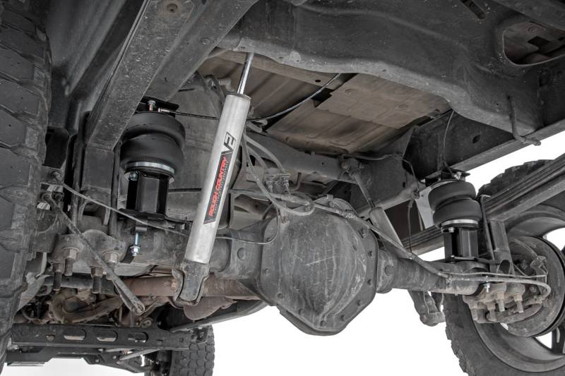 Ideal Leveling: Is your truck your workhorse? The main attraction of a pickup is the ability to haul and tow as needed. However, due to the weight in the bed or the condition of the rear leaf springs, your vehicle may become un-level under load. At Rough Country, we've designed a solution to eliminate these concerns. Introducing Rough Country's Rear Air Spring Kit.Heavy-Duty Construction: Rough Country's Rear Air Spring Kit includes two high-quality, double convoluted air bags, reinforced with durable powder-coated steel brackets and DOT-approved airlines. Whether you're towing a trailer or hauling heavy loads, this kit helps ensure your vehicle remains level, alleviating the strain on your trailer's tongue weight. The kit features 1/4" push-to-connect air fittings for easy installation, along with all necessary bracketry for a secure fit. Rough Country's Air Spring Kit supports up to 5,000 lbs of load, minimizing sway and preventing bottoming out while braking and steering. Easy Installation: Quick and simple setup for immediate use. Rough Country's kit can be installed at home with standard tools in just 5-6 hours, ensuring minimal downtime and fast, hassle-free installation.Onboard Air Compressor and Wireless Controller: For added convenience, Rough Country offers an optional onboard air compressor and wireless controller to easily adjust your air spring kit on the go. Control air pressure at the push of a button from the comfort of your vehicle.Reliable Warranty Coverage: Rough Country's Rear Air Spring Kit includes a limited lifetime warranty on the air springs and a two-year replacement warranty on the compressor, offering lasting protection against manufacturer defects. This industry-leading coverage ensures confidence in both quality and durability, so you can count on Rough Country to keep your truck performing at its best.