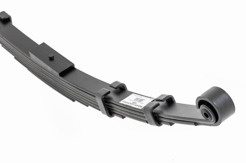 Added Lift Height and Ride Comfort. Take your suspension kit to the next level with Rough Country's Replacement Leaf Springs. Constructed from high-quality materials and designed specifically for the weight of your vehicle. This enhanced replacement spring will provide a factory-like feel while retaining your suspension lift height.?á\ Durable and Off-Road Ready. Rough Country's Replacement Leaf Springs are designed to tackle any terrain that they are faced with. Featuring a multi-leaf design and spring pads this reduces the friction and maximizes comfort. Each leaf pack utilizes tapered leaves for improved flexibility at their ends.?á\ Installation. Rough Country's Replacement Leaf Springs?áoffer a 100% bolt-on installation estimated to take approximately 1-2 hours depending on vehicle condition. Simply remove the pre-existing leaf spring and use the stock hardware to equip your vehicle with this high-quality replacement.?á\ Lifetime Replacement Warranty. Rough Country's Replacement Leaf is backed with a 5-year replacement warranty towards manufacturer defects. As such, the product is protected from structural and workmanship damage after the date of purchase. With our industry-leading warranty give yourself peace of mind when using Rough Country's Suspension products!?á