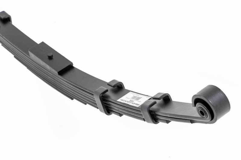 Added Lift Height and Ride Comfort. Take your suspension kit to the next level with Rough Country's Replacement Leaf Springs. Constructed from high-quality materials and designed specifically for the weight of your vehicle. This enhanced replacement spring will provide a factory-like feel while retaining your suspension lift height. \ Durable and Off-Road Ready. Rough Country's Replacement Leaf Springs are designed to tackle any terrain that they are faced with. Featuring a multi-leaf design and spring pads this reduces the friction and maximizes comfort. Each leaf pack utilizes tapered leaves for improved flexibility at their ends. \ Installation. Rough Country's Replacement Leaf Springs offer a 100% bolt-on installation estimated to take approximately 1-2 hours depending on vehicle condition. Simply remove the pre-existing leaf spring and use the stock hardware to equip your vehicle with this high-quality replacement. \ Lifetime Replacement Warranty. Rough Country's Replacement Leaf is backed with a 5-year replacement warranty towards manufacturer defects. As such, the product is protected from structural and workmanship damage after the date of purchase. With our industry-leading warranty give yourself peace of mind when using Rough Country's Suspension products!