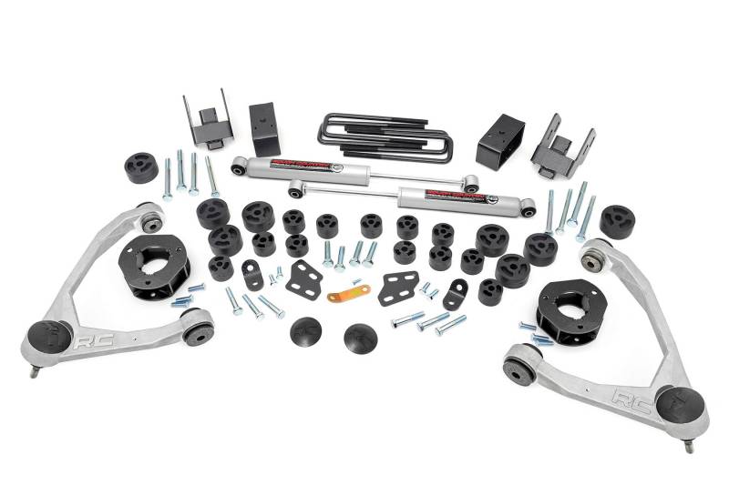Complete 4.75" Lift Solution for Superior Performance On and Off the Road: This 4.75" combo lift kit delivers the best of both worlds combining a 3.5" suspension lift with a 1.25" body lift for aggressive ground clearance, larger tire fitment, and a perfectly leveled stance. Whether you're hitting the trails or cruising the pavement, this kit is built to perform without compromising factory ride quality.Precision-Tuned N3 Shocks for Balanced Control: Included in the kit are Rough Country's premium Nitrogen-charged N3 shocks, featuring 10-stage velocity-sensitive valving. Custom-tuned for this exact application, these shocks provide exceptional handling and comfort across all terrains on-road or off-road delivering the ideal balance between performance and ride quality.High-Articulation Control Arms with POM Ball Joints: Engineered for superior wheel travel and simplified installation, the high-articulation control arms come equipped with oversized POM ball joints. These joints feature a low-friction Polyoxymethylene (POM) ball race, offering longer life, greater motion range, and a maintenance-free design. A sealed boot with a grease-relief valve keeps debris out and performance in. For added style, the control arms are also available in a striking red finish-perfect for those looking to add a bold accent to their suspension setup. Durable Fabricated Rear Lift Blocks: This kit also includes heavy-duty fabricated rear blocks stronger and more durable than standard cast blocks. Designed to withstand harsh environments and long-term use, they resist cracking and deformation, delivering long-lasting lift support.Installation Made Easy: This kit features a mostly bolt-on installation process with only minor cutting and drilling required. No need to disassemble your factory struts, and the design is fully reversible should you ever choose to return to stock height. Front bumper brackets are also included to maintain proper alignment and a clean, factory-like appearance.Whether you're upgrading for looks, clearance, or capability, this all-in-one kit provides the ultimate lift solution for your vehicle.