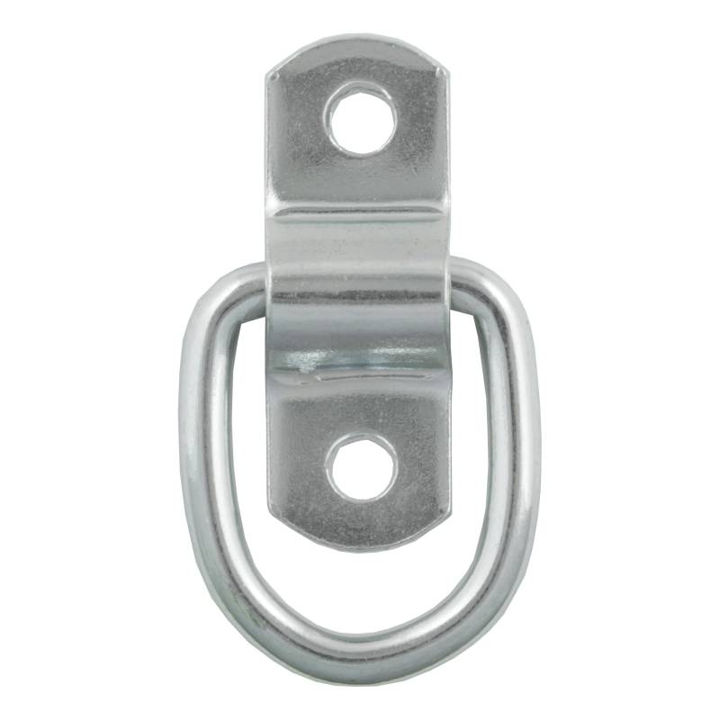Making sure that your cargo is tied down and fully secure for the journey is important for any towing job. Not only is unsecured cargo a danger to you, your passengers and your fellow drivers, but it can also cause damage to your trailer, pickup truck bed or vehicle cargo area, as well as to the cargo itself. Together with our cargo straps and safety chains, CURT tiedown anchors are easy to mount in any trailer, truck or full-size van, and they help keep your items safe for the road ahead. This particular D-ring tiedown anchor is designed to be surface mounted and add a convenient anchoring point for cargo straps, ropes or cables. It comes with a 2-1/4 in. x 13/16 in. mounting bracket and two 1/4 in. diameter mounting holes, spaced 1-1/2 in. apart, center to center. This rope ring features zinc-plated steel construction and offers a capacity of 1,200 lbs. Mounting screws are not included in this package.