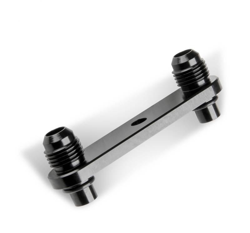 Earls Transmission oil cooler adapters allow easy installation of AN -6 hoses to a late-model GM 6-speed automatic transmissions (fits 6L80E and 6L90E transmissions). This adapter bolts onto the Original Equipment transmission thermostat. This adapter uses O-Ring seals and has -6 AN male flares for use with AN pluming & Earls (or similar) oil coolers. Black Anodized finish.