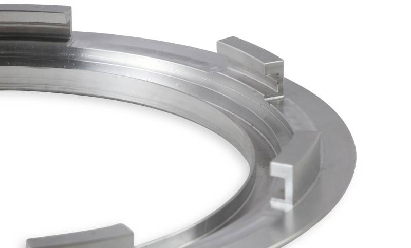 These weld-in mounting rings allow the use of a modern in-tank EFI fuel module in your custom or modified fuel tank. Most late model GM, Mopar, and Ford factory fuel modules have been standardized to a common size with a thin 6" diameter hat at the top of the fuel module. Choose from aluminum, steel, or stainless steel mounting ring for easy welding (use same material as your fuel tank).