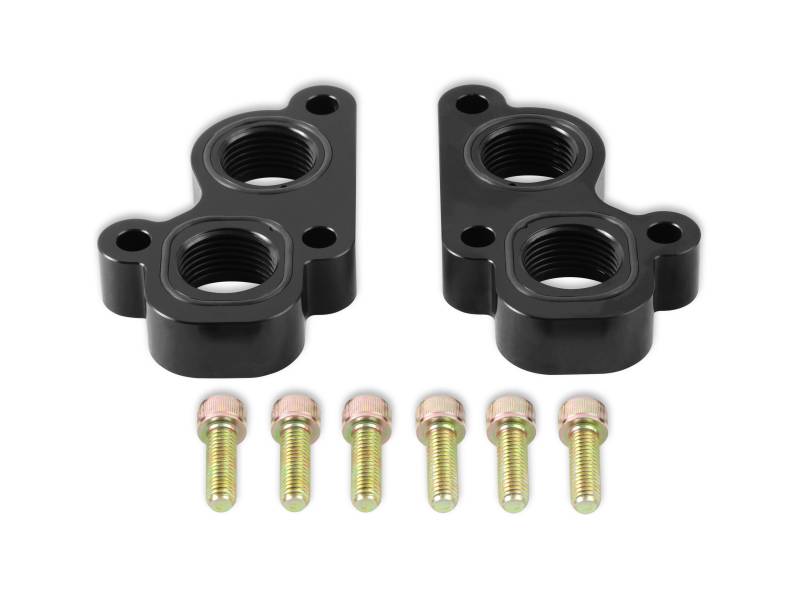 These new adapters allow easy installation of a remote mounted electric water pump on the GM Gen-V LT engine. These billet aluminum block adapters feature (4) -12 AN O-ring female ports for routing coolant to the radiator & remote mounted electric water pump. Ideal for use w/ Earl's Adjustable Coolant Cross-Over Tubes - part number LS0035ERL or LS0037ERL.