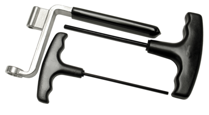T-Handles. This simple T-handle and wrench set makes adjustment very easy, cutting the adjusting time in half. Simply position the adjusting handle wrench over the rocker arm lock-down - make sure you have purchased the set with the proper sized wrench - and drop the appropriate T-handle down through the hole in the wrench - with one hand doing the job of two! Then make the lash adjustment with a feeler gauge according to the camshaft manufacturer specifications. Sold as one set.