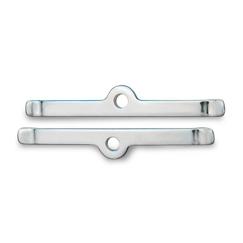 Engine Valve Cover Holdown Clamps Premium Chrome Valve Cover Hold-Down Clamps. By spreading the load over a wider area, this clamp minimizes distortion of the valve cover flanges, thereby decreasing the possibility of oil leakage. Fits Chevrolet small-block V8 and V6/90 engines through 1986. 4 per package.