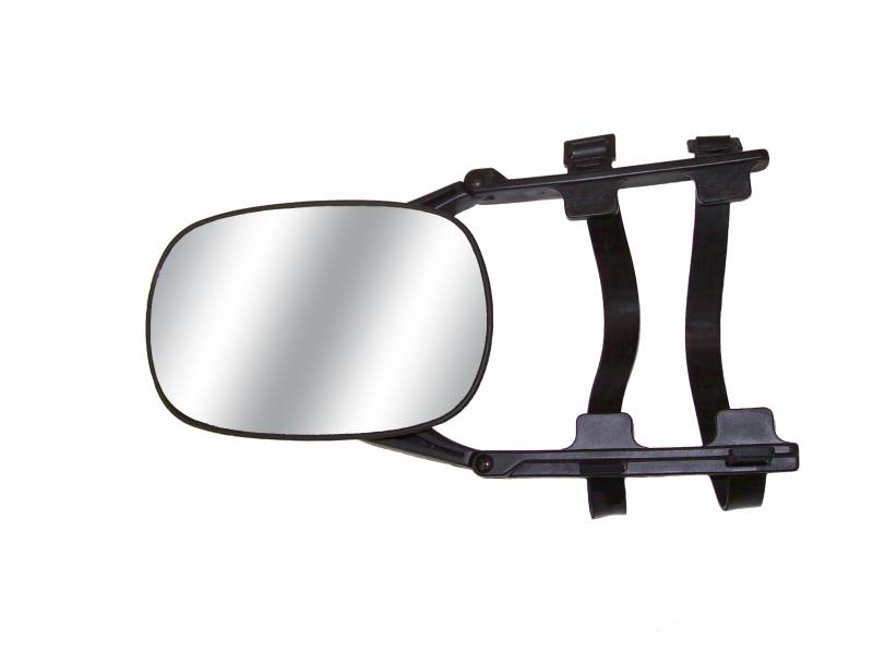 Universal Towing Mirror - Straps secure this mirror to your existing mirror CIPA's Clip-On Towing Mirror was designed to fit large factory truck and van mirrors. Rubber straps secure the Clip-On Towing Mirror to your vehicle's existing mirror, and easy-to-adjust arms fit tightly for a steady vibration-free ride. The Clip-On Towing Mirror extends your vision further than any OE mirror ever could with a total extension of 7 inches. This mirror will not obstruct your vehicle's existing viewing area. The Clip-On Towing Mirror has a 5" by 7.5" mirror face that widens visibility, in addition to your factory mirror, for peace of mind while towing. The Clip-On Towing Mirror is not position specific, so it can accommodate the driver side or the passenger side of your vehicle. It will fit up to a 10" mirror. Installation is simple and no tools are required. The Clip-On Towing Mirror is perfect for temporary or light towing needs. It is not recommended to be used as a full time heavy-duty towing solution. For best results, remove the towing mirror when not in use, and store in a cool dry place. Mirrors come 1 per package. Expand your Horizons