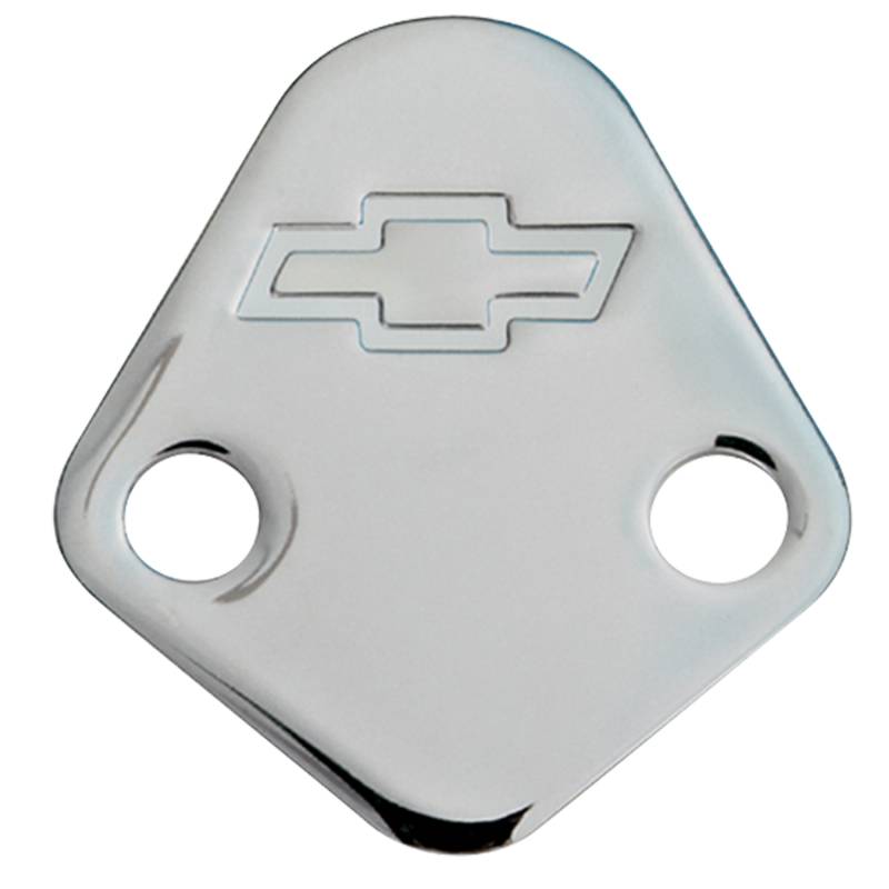 Fuel Pump Block-Off Plate Premium Chrome Fuel Block-Off Plate. Stamped with the handsome Chevrolet Bowtie. For use on Big-Block Chevrolet V8s.
