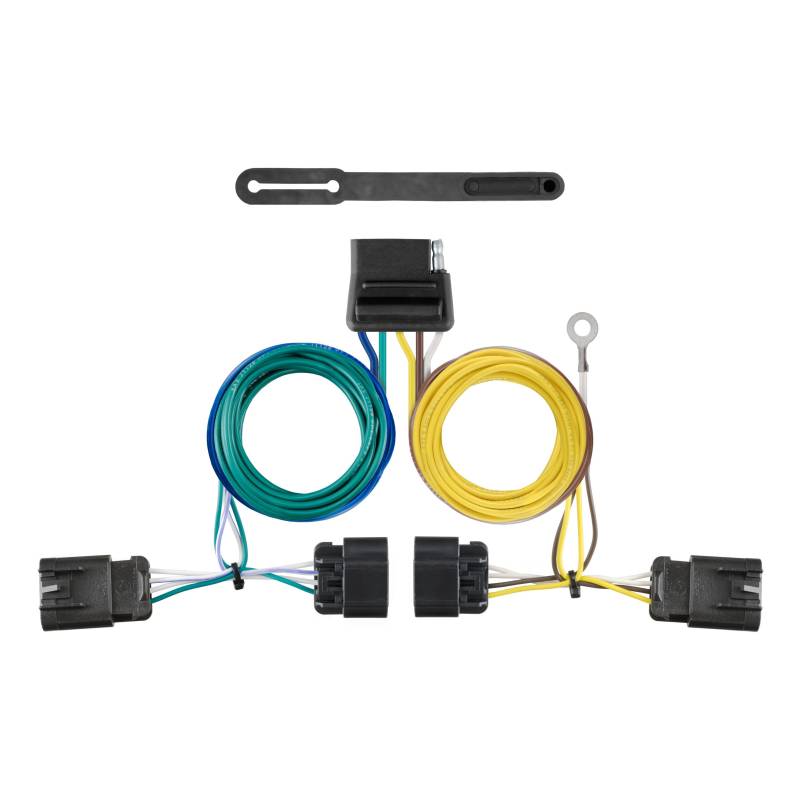 A CURT custom wiring harness (also called a T-connector) is a simple, plug-and-play electrical device that eliminates the need for cutting, splicing and soldering when installing vehicle-to-trailer wiring. Most vehicles do not come ready to tow. Unless your vehicle has a towing package, it is probably not equipped with a trailer wiring connector. This is where CURTs custom wiring harnesses come into play. Custom wiring harnesses plug into your vehicles electrical system using original equipment (OEM) connectors. Our custom wiring harnesses use two or more OEM connectors to plug in at the taillight assembly and provide a standard trailer socket to allow a trailer to be plugged into your vehicles power system. This harness provides a 5-way flat connector socket and is designed to be a custom wiring harness for certain years of the GMC Terrain or Chevrolet Equinox (to verify your vehicle compatibility, see the CURT application guide at curtmfg.com). CURT custom wiring harnesses are long-lasting and quick to install. They come with dust covers to keep your connector clean when not in use and feature a one-year limited warranty to give you peace of mind.