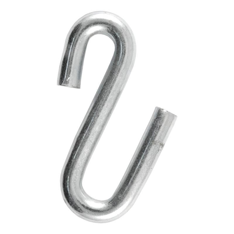 Certified 17/32" S-Hook (7,600 lbs.) There are always some factors on the road you cannot control -- an irresponsible driver, adverse weather conditions -- but one thing you can control is the type of towing equipment you use. Just because there are threats out there, doesn't mean your towing adventures need to be dangerous. CURT offers a variety of towing safety products -- including safety chains, safety cables, hooks, links and more -- to make sure you have confidence to Bring It and trustworthy equipment to Bring It safely. CURT certified S-hooks are the easy, reliable way to connect your safety chains from your trailer to your tow vehicle. They feature a heat-treated steel construction to ensure long-lasting wear resistance, and they come with a zinc-plated finish to outlast the elements. This particular S-hook has a 17/32" diameter and offers a gross trailer weight capacity of 7,600 lbs. For added safety, it is tested in accordance with SAE J684. Remember, when attaching safety chains, the chains should be cross underneath the trailer coupler, and each hook and chain must be rated to meet or exceed the gross weight of the trailer.