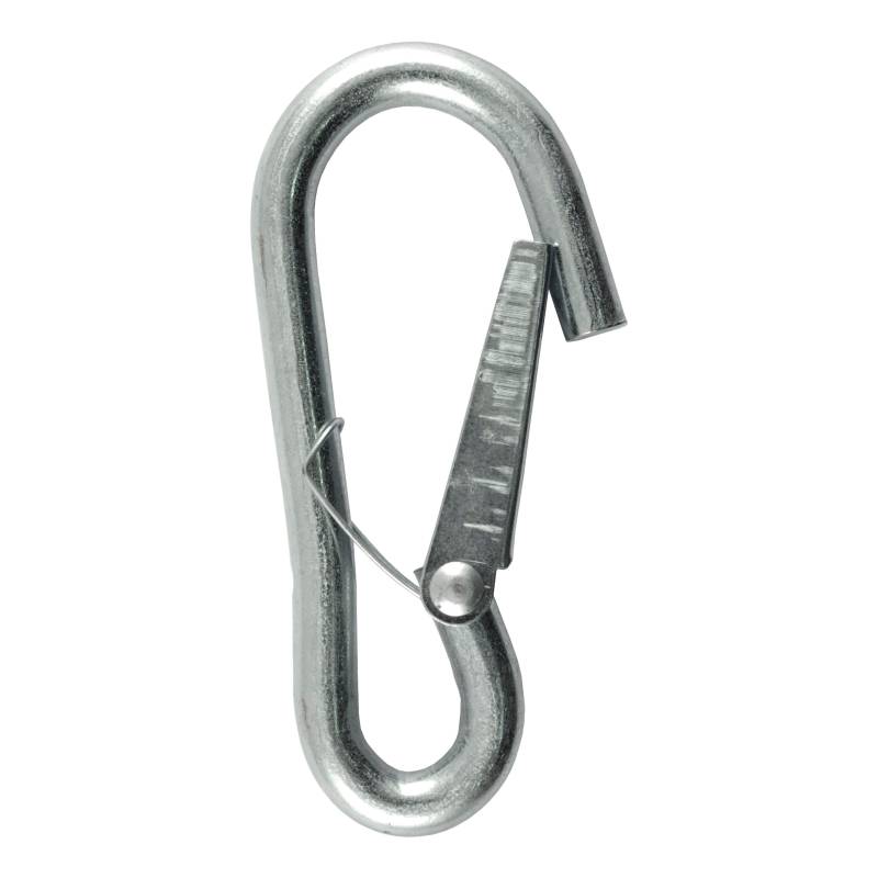 3/8" Snap Hook (2,000 lbs.) There are always some factors on the road you cannot control -- an irresponsible driver, adverse weather conditions -- but one thing you can control is the type of towing equipment you use. Just because there are threats out there, doesn't mean your towing adventures need to be dangerous. CURT offers a variety of towing safety products -- including safety chains, safety cables, hooks, links and more -- to make sure you have confidence to Bring It and trustworthy equipment to Bring It safely. CURT snap hooks are a highly secure way to connect your safety chains from your trailer to your tow vehicle. They feature a spring-loaded safety latch that turns the hook into a closed loop. Similar to a quick link, the safety latch allows for a safety chain connection that won't come loose from vehicle vibrations or jarring on uneven terrain. Snap hooks also feature a strong steel construction and come with a zinc-plated finish to outlast the elements. This particular snap hook has a 3/8" diameter and offers a gross trailer weight capacity of 2,000 lbs. Remember, when attaching safety chains, the chains should be cross underneath the trailer coupler, and each hook and chain must be rated to meet or exceed the gross weight of the trailer.