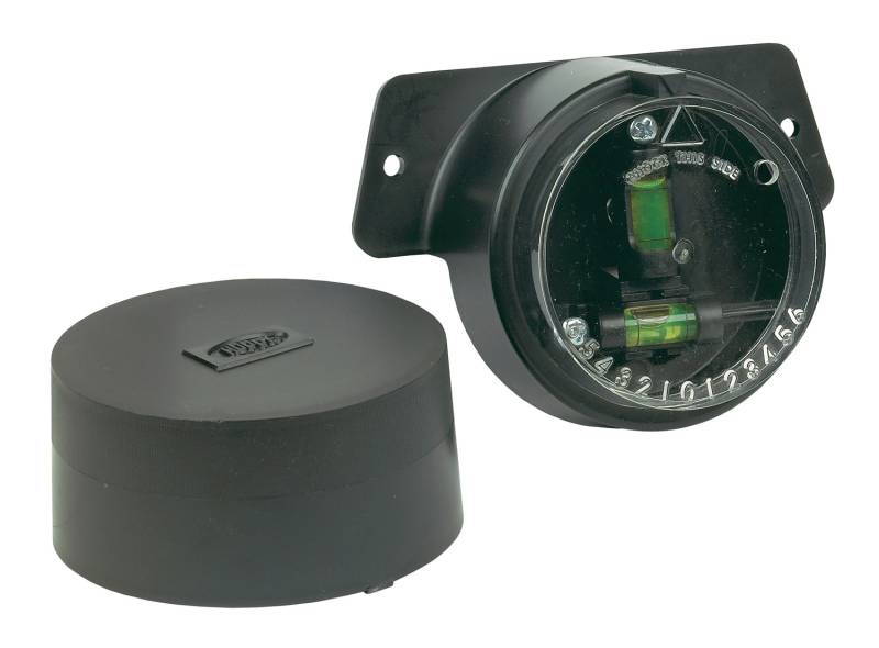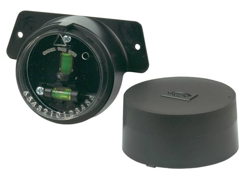 Made in USA hitch level features a dial and pointer that indicates the number of inches required to level your trailer. Once permanently mounted the product blends in with most trailer tongues and is protected by the included weatherproof cap. Great for side to side and front to back leveling.