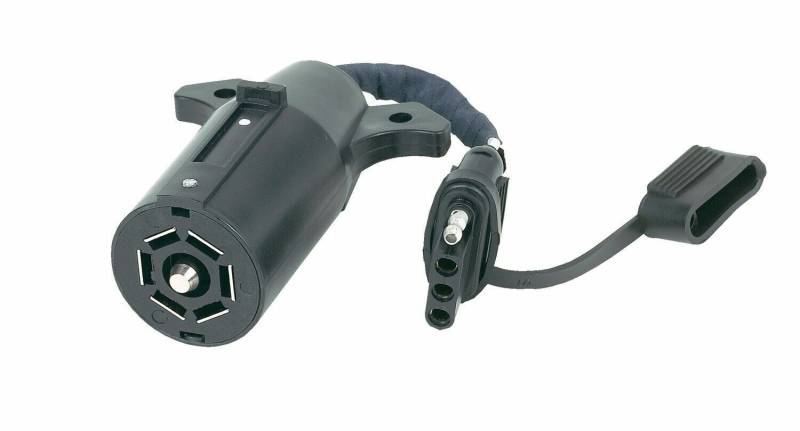 Quickly convert your 7 blade vehicle side connector to a 4 flat trailer end connector. This adapter provides a flexible reach and includes a dust cover for the 4 Flat to help prevent corrosion.