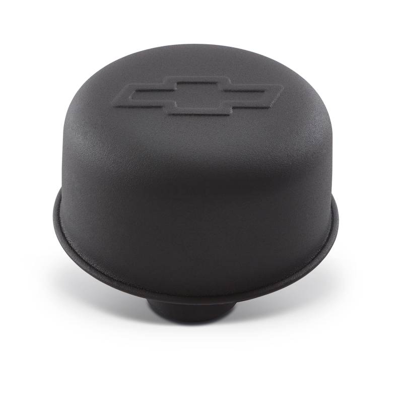 Engine Valve Cover Breather This engine valve cover breather has a 3 inch overall diameter and is 2.50 inches tall. It includes a raised Chevrolet Bowtie logo emblem on the top side. This is a push-in style valve cover breather which fits a 1.22 inch valve cover hole. Great looking black crinkle finish. This is an officially licensed GM Performance Parts product. Sold individually. Backed by a limited 30 day factory warranty.