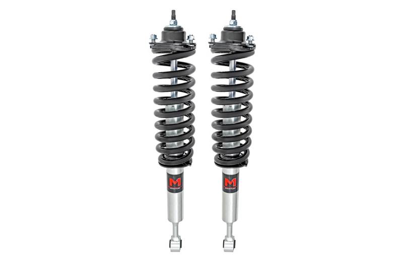 Improved Stance, Balance, and Handling. If you want to improve your vehicle's on-road performance and off-road capabilities, Rough Country's M1 Loaded Strut Kits are the way to go. Our M1 Loaded Struts help stabilize your vehicle's movements, enhancing control when you turn, brake, accelerate or ride over uneven road surfaces. As an adjustable ride height strut, these M1's keep your suspension from overextending, providing a more consistent ride. Made for rugged off-road performance, our M1 monotube struts have a 46mm digressive piston for a more stable ride, preserving the smooth ride quality you need.\ Quality Construction. Rough Country's M1 Loaded Struts have been engineered to give you the most reliable performance, increased driving comfort, and all-around performance for your vehicle. Made from 2" seamless extruded tubing and feature durable vulcanized natural rubber bushings. They're also zinc plated for resistance against the elements. Plus, they're adjustable in height. Utilizing multiple grooves in the strut body the spring perch can be raised or lowered. So whether you're looking to add a little extra clearance for off-roading or just want your ride to sit a little higher, our M1 Monotube Loaded Struts are the perfect solution.\ Installation and Warranty. This bolt-on installation requires just basic tools and about 2-3 hours to complete. Our Strut Kit is backed with a limited lifetime replacement warranty towards manufacturer defects. As such, the product is protected from structural and workmanship damage after the date of purchase. With our industry-leading warranty, give yourself peace of mind when using Rough Country's products!