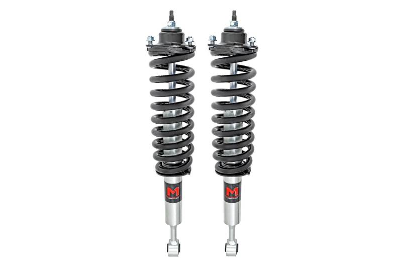Improved Stance, Balance, and Handling. If you want to improve your vehicle's on-road performance and off-road capabilities, Rough Country's M1 Loaded Strut Kits are the way to go. Our M1 Loaded Struts help stabilize your vehicle's movements, enhancing control when you turn, brake, accelerate or ride over uneven road surfaces. As an adjustable ride height strut, these M1’s keep your suspension from overextending, providing a more consistent ride. Made for rugged off-road performance, our M1 monotube struts have a 46mm digressive piston for a more stable ride, preserving the smooth ride quality you need.\ Quality Construction. Rough Country's M1 Loaded Struts have been engineered to give you the most reliable performance, increased driving comfort, and all-around performance for your vehicle. Made from 2" seamless extruded tubing and feature durable vulcanized natural rubber bushings. They're also zinc plated for resistance against the elements. Plus, they're adjustable in height. Utilizing multiple grooves in the strut body the spring perch can be raised or lowered. So whether you're looking to add a little extra clearance for off-roading or just want your ride to sit a little higher, our M1 Monotube Loaded Struts are the perfect solution.\ Installation and Warranty. This bolt-on installation requires just basic tools and about 2-3 hours to complete. Our Strut Kit is backed with a limited lifetime replacement warranty towards manufacturer defects. As such, the product is protected from structural and workmanship damage after the date of purchase. With our industry-leading warranty, give yourself peace of mind when using Rough Country's products!