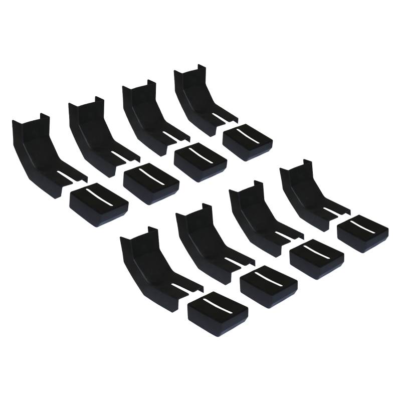 Bracket Covers for Raptor Series Slide Track Running Boards Only - Qty 8 Set Upgrade the look and protection of your Raptor Series Slide Track Running Boards with our Series Slide Track Bracket Covers. These heavy-duty thermoplastic rubber covers trim easily for a custom fit and deliver a clean, finished appearance. Built to withstand harsh weather and road conditions, they help protect powder-coated steel brackets and extend their lifespan. Installs easily using existing hardware. Available in sets of 4, 6, or 8, with single replacements available. Backed by a limited lifetime warranty. Gives your boards a clean, finished look Heavy duty thermoplastic rubber construction Slotted holes for precision adjustment Easy to trim for custom fit to your application Available in sets of 4, 6, or 8